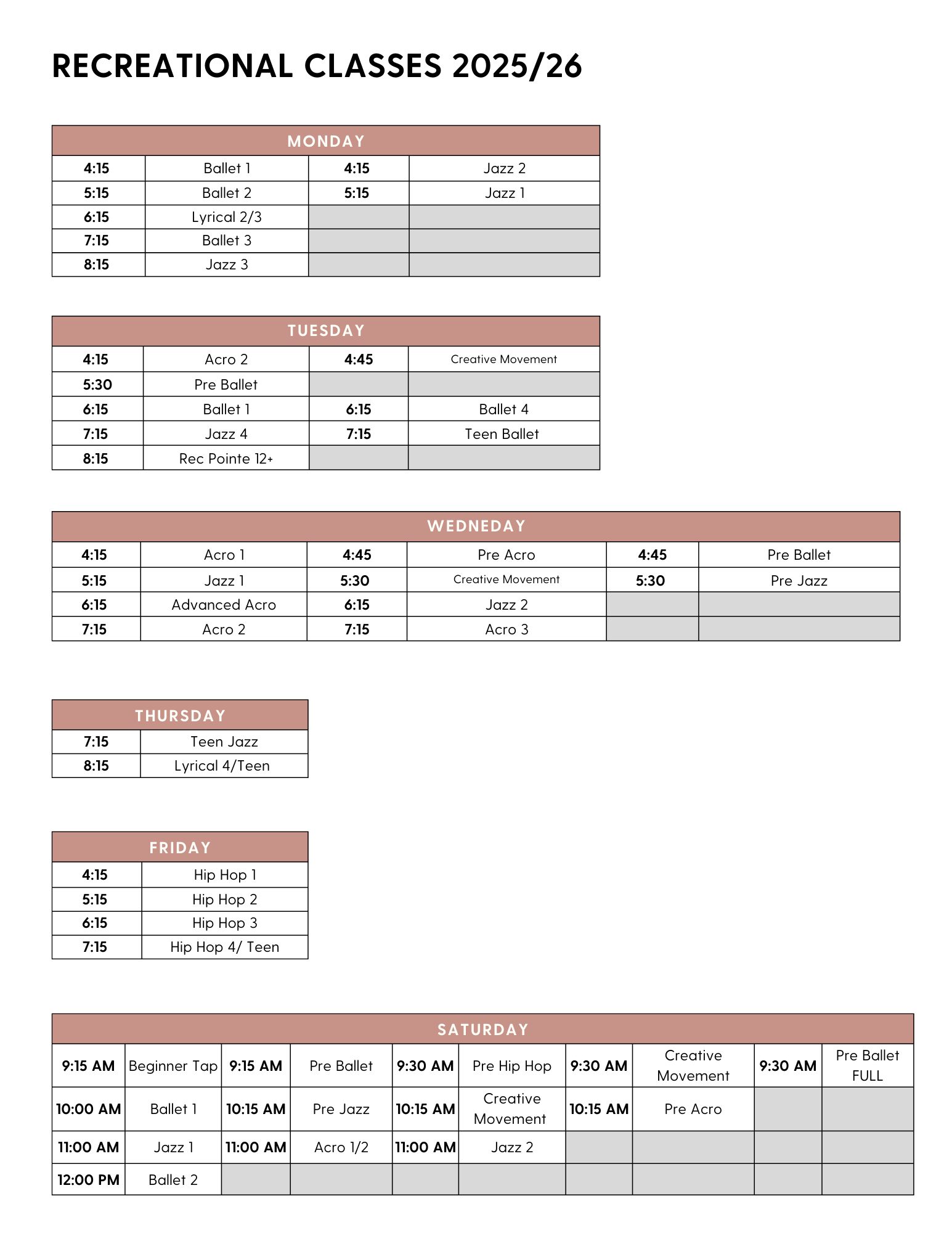 Lyrical classes must be coupled with Ballet or Jazz Technique.